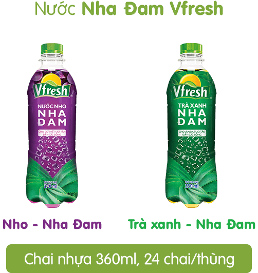 Quy cách thùng: 24 chai/thùng, sản phẩm chứa những hạt nha đam thanh mát quyện, hương vị tươi ngon của nho hoặc trà xanh, không chất bảo quản.